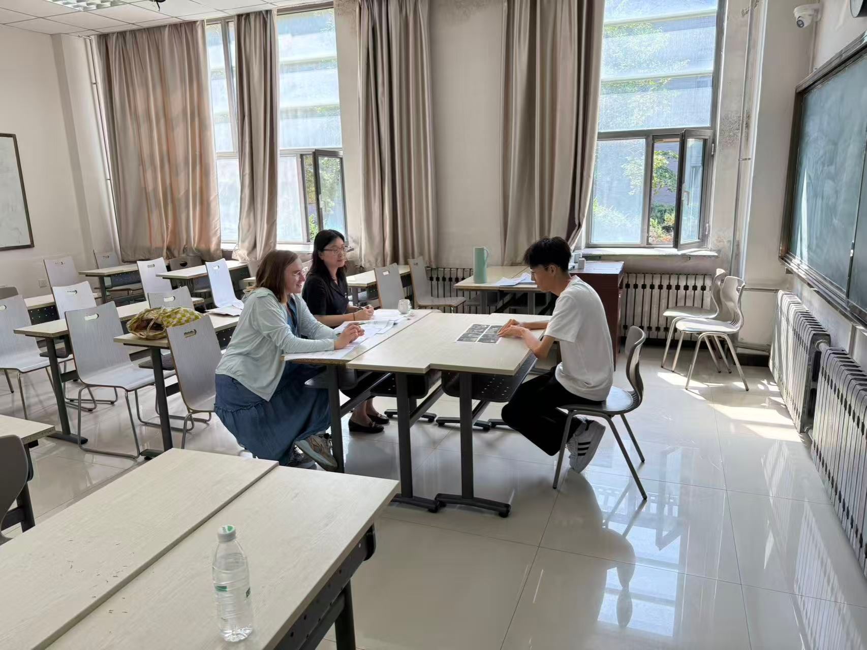 9月8至12日,太阳成集团tyc234cc语言培训中心组织2025级354名新生进行英语水平测试,14名中外籍教师组成的英语教学团队全程参加了测试。测试分为两个阶段:第一阶段是按自然班进行笔试,主要测试学生的阅读和写作能力。第二阶段是对学生进行“一对一”口语测试,主要评估学生的英语听力和口语表达能力。