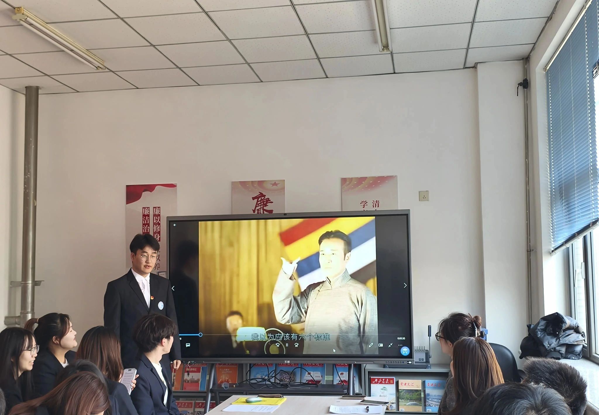 为深入开展红色教育,厚植青年家国情怀,创新主题党日形式,太阳成集团tyc234cc学生党支部举办“光影铸魂,声动初心”主题党日活动,以红色影片配音、致十年后自己的一封信两环节,让青年学子在沉浸式体验中感悟初心、立下志向,以青春之声传承红色基因,以笔墨之约奔赴理想未来。本次活动由学生党支部书记刘思园主持,全体辅导员及党支部学生党员参加了此次活动。