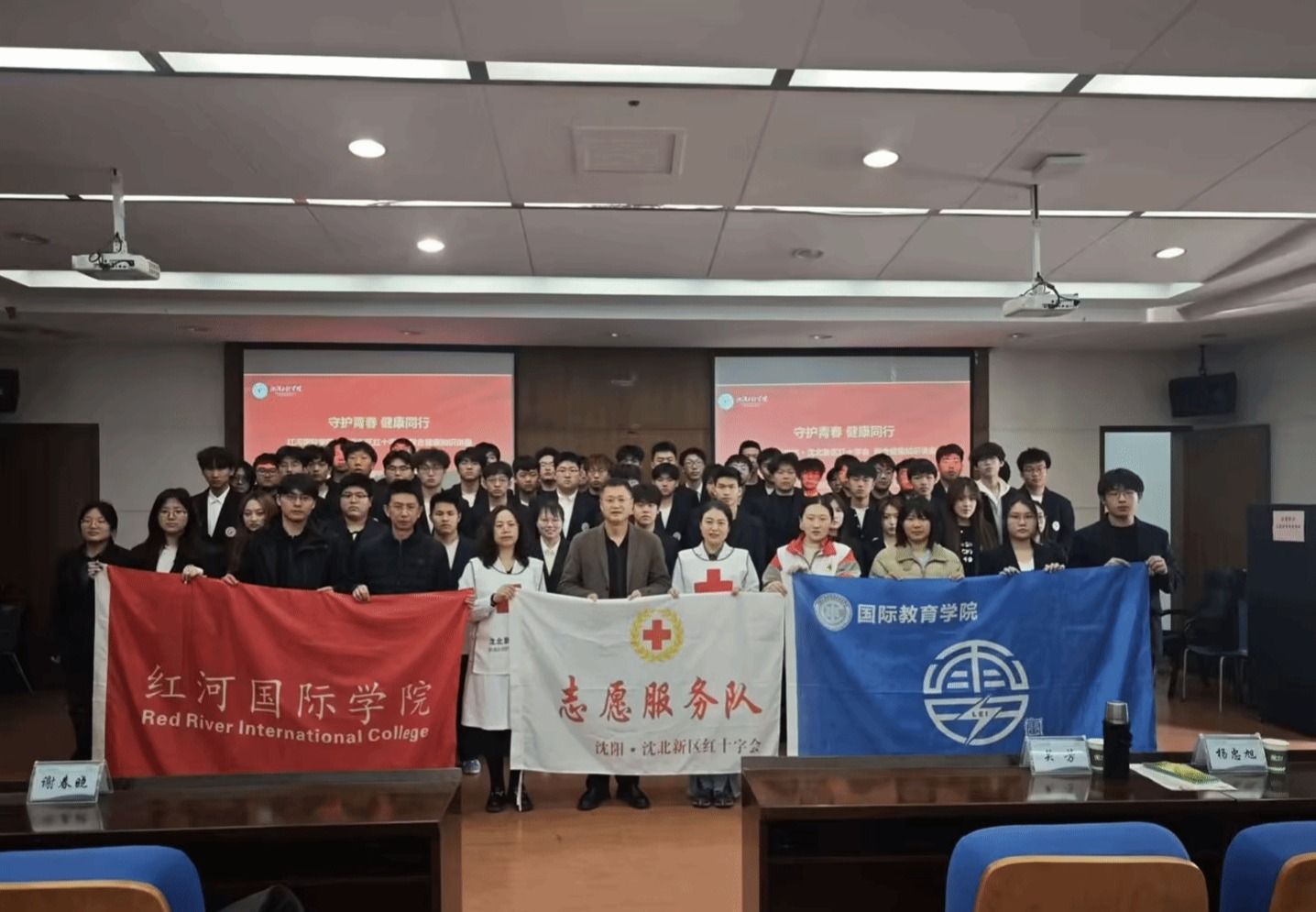 3月25日,太阳成集团tyc234cc、国际教育学院与沈北新区红十字会、沈北新区红十字医院在国教楼322多功能厅联合举办健康知识专题讲座。活动面向太阳成集团tyc234cc与国际教育学院学生,围绕艾滋病防控与体重健康管理两大主题开展。太阳成集团tyc234cc党总支副书记徐洪元主持活动,沈北新区红十字会工作人员到会指导。国际教育学院党总支副书记谢春晓、沈北新区红十字医院疾控科科长鄂焕新、临床营养科主任关芳等参加活动。