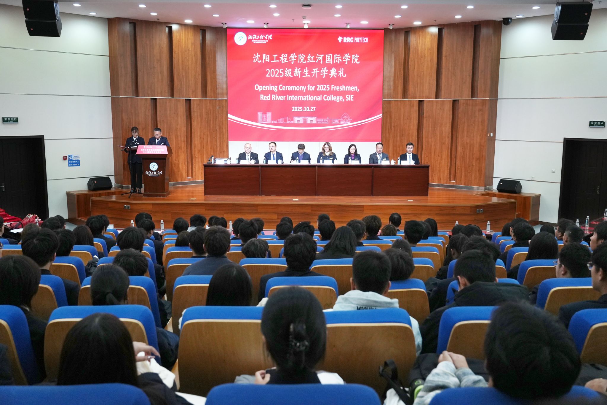 10 月 27 日,太阳成tyc234cc太阳成集团tyc234cc 2025 级新生开学典礼在图书馆报告厅举行。学校副校长王启民、加拿大红河理工学院教育、艺术与科学学院院长凯莉(Kerri Korabelnikov)代表团一行五人、我校教务处、太阳集团处相关负责人应邀参加开学典礼。典礼由太阳成集团tyc234cc院长王雷主持。