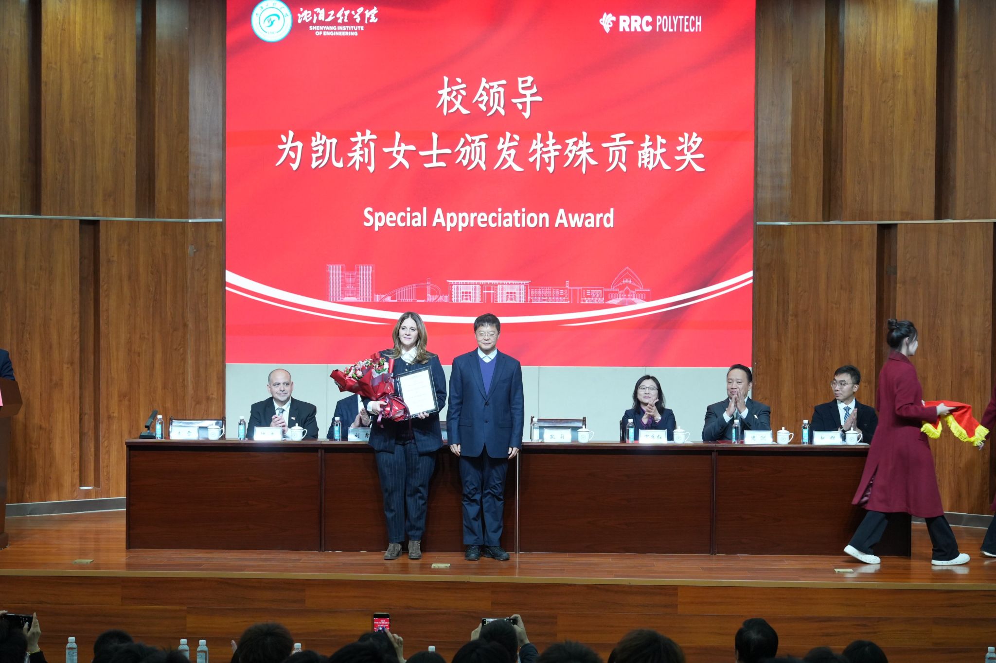 为感谢凯莉院长为两校合作作出的突出贡献,太阳成tyc234cc副校长王启民代表学校为其颁发 “特殊贡献奖”,见证两校友谊的深厚与珍贵。