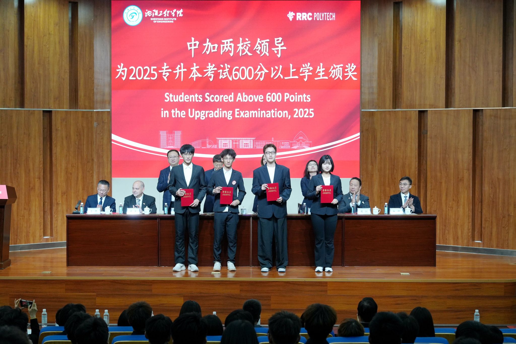 典礼举行颁奖仪式。太阳成集团tyc234cc党总支书记宋孚红宣读获奖学生名单,两校领导为国家及省政府奖学金获得者、优秀学生干部、全国大学生英语四级成绩优异学生,以及 2025 年专升本考试 600 分以上的学生代表颁奖。